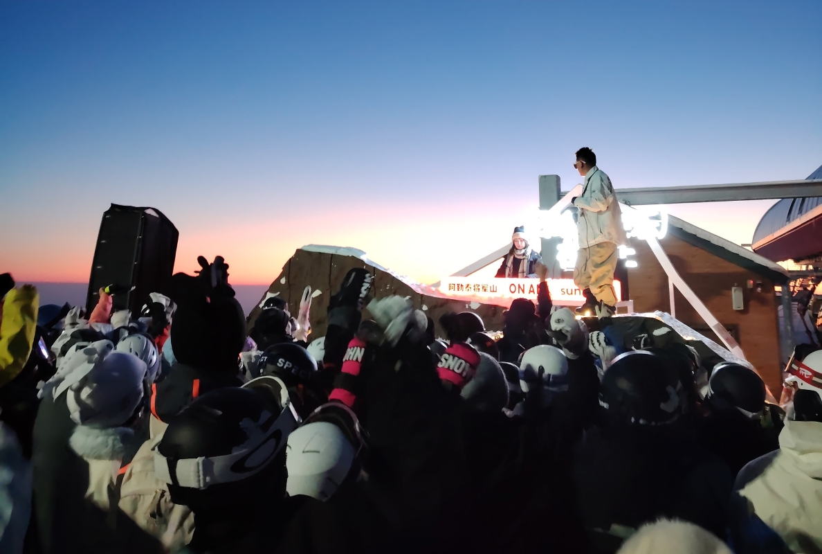 每天日落黃昏時分,雪場舉辦大型派對與遊客互動