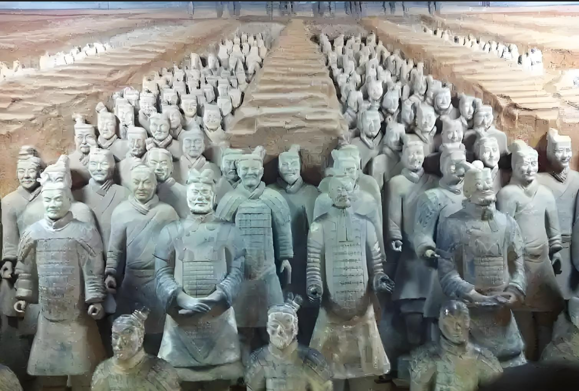 西安有一支神秘而龐大的地下皇家隊伍——兵馬俑。回望千年以前,秦始皇一統天下,就驅動天下的勞力,幹了兩件大事:地上有長城,地下有兵馬俑。這些扶起來的兵馬,褪去了彩繪的泱泱大軍,依舊威猛,置身其中,仿若再次感受當年的千军万马的金戈鐵骑,掃六合,平天下。‌