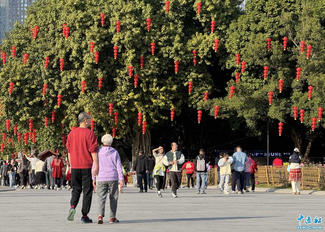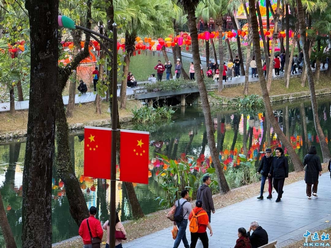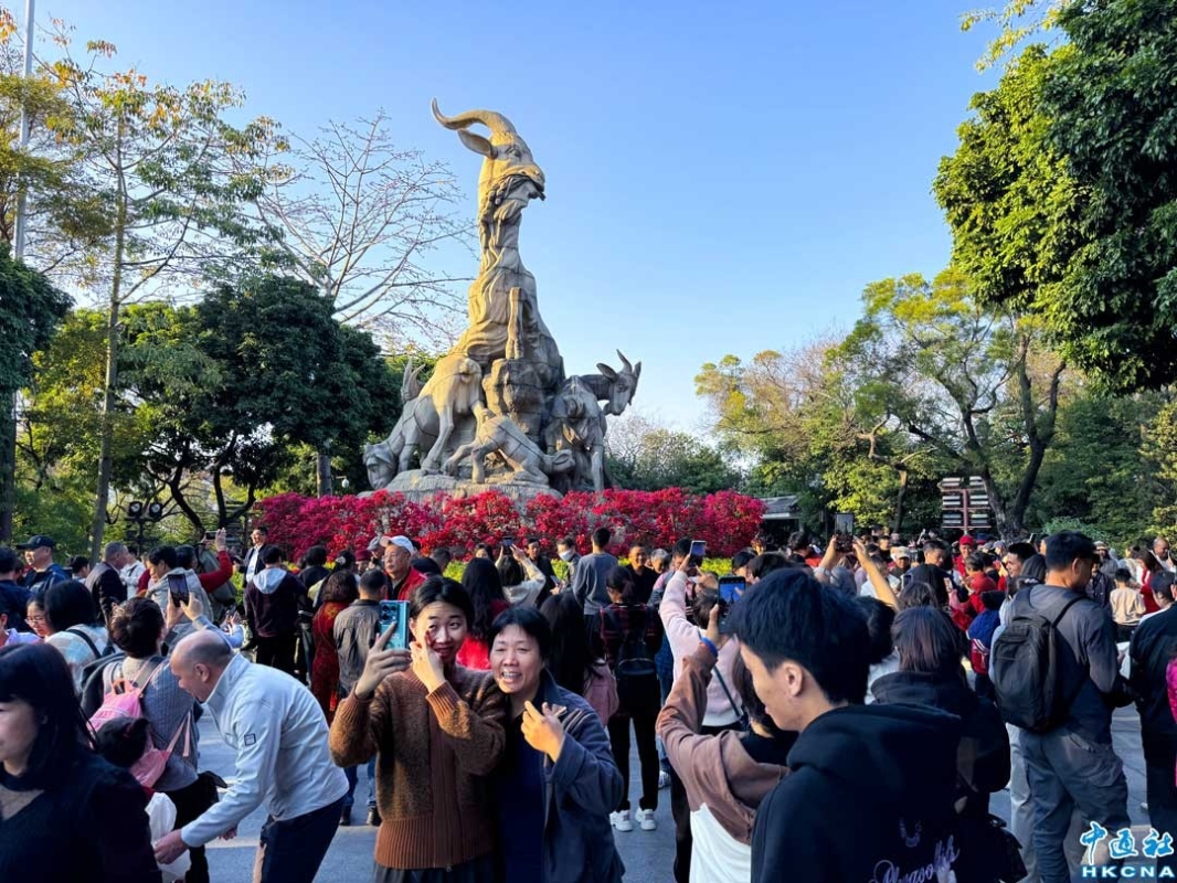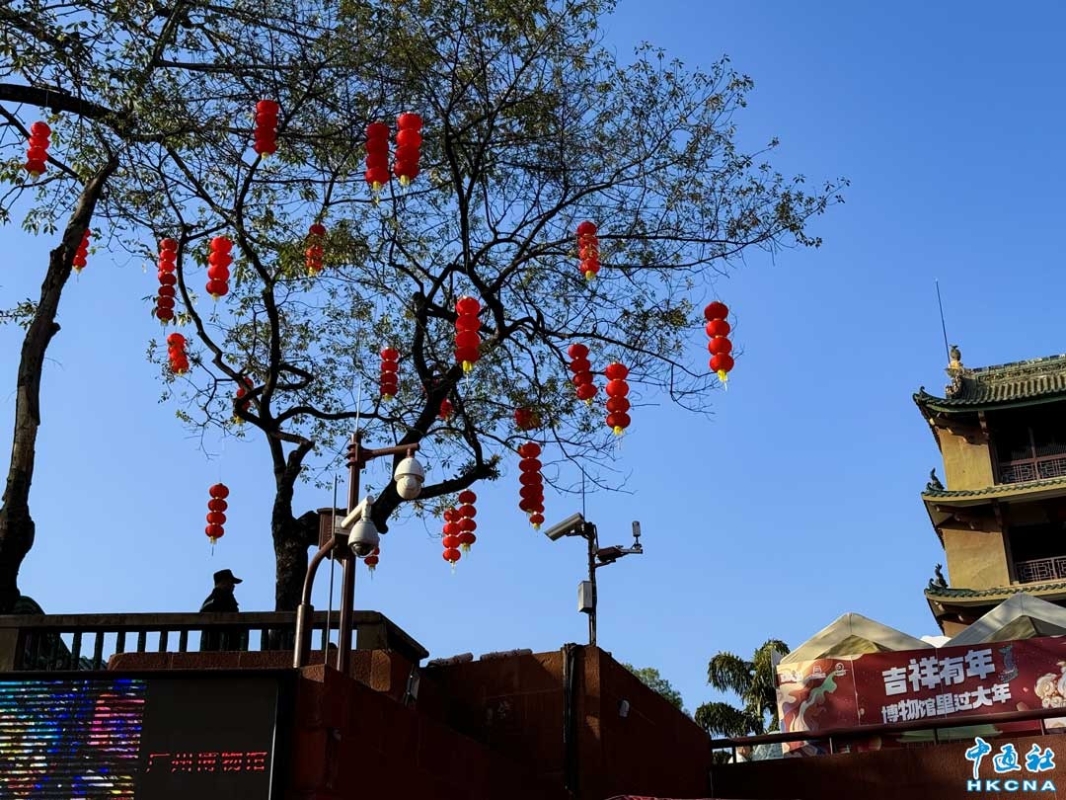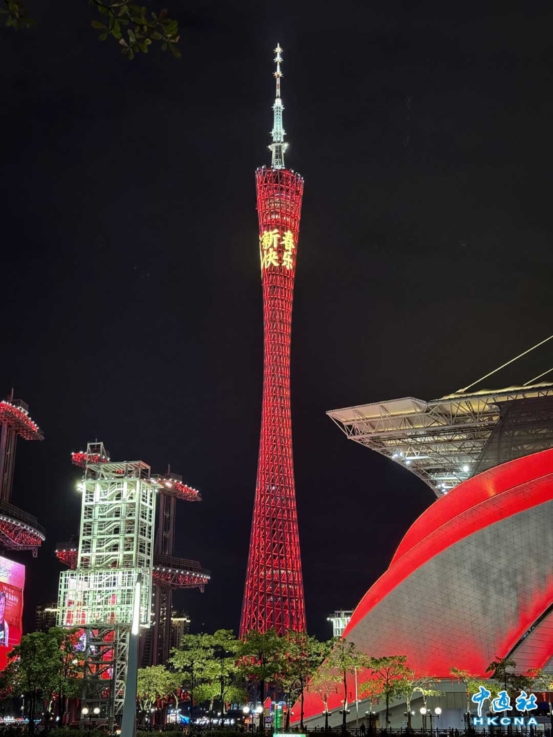 香港新聞網2月1日電 (記者徐文峰)新春期間,中國廣東省廣州年味濃鬱,越秀公園內五羊石雕、明城牆張燈結綵,到處洋溢著新年的喜慶。五彩幻變的廣州塔,美得讓人心醉。