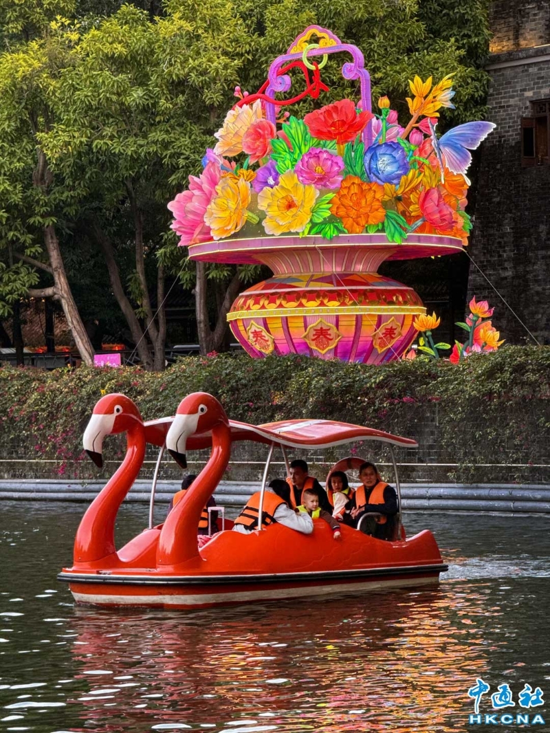 明城牆下,穿著漢服的小孩吃著冰糖葫蘆,老人家拿著風車行大運,年味撲面而來