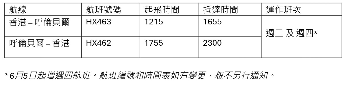 香港航空將於4月29日開通香港至內蒙古呼倫貝爾的新航線。 呼倫貝爾作為內蒙古東北部的重要城市,不僅是呼倫貝爾大草原的門戶,更是連接中蒙俄經濟走廊的重要節點。呼倫貝爾以其壯麗的自然風光和豐富的文化遺產聞名,旅客可在此體驗呼倫貝爾大草原的遼闊、探訪額爾古納河的美景,感受蒙古族與鄂溫克族的獨特風情。此外,新航線將為香港與內蒙古地區的企業提供更便捷的商務往來通道,特別是在農業、能源及文化旅遊領域,促進兩地的經貿合作。 香港航空致力為旅客提供更豐富的出行選擇,在現有的航線網絡覆蓋上策略性地增加具發展潛力的航點,已先後開通了敦煌、西寧、老撾永珍、越南峴港等多條“一帶一路”航線,為香港進一步鞏固國際航空樞紐地位擔當重要角色。 香港航空往來香港至呼倫貝爾航班詳情如下(所有時間均為當地時間):