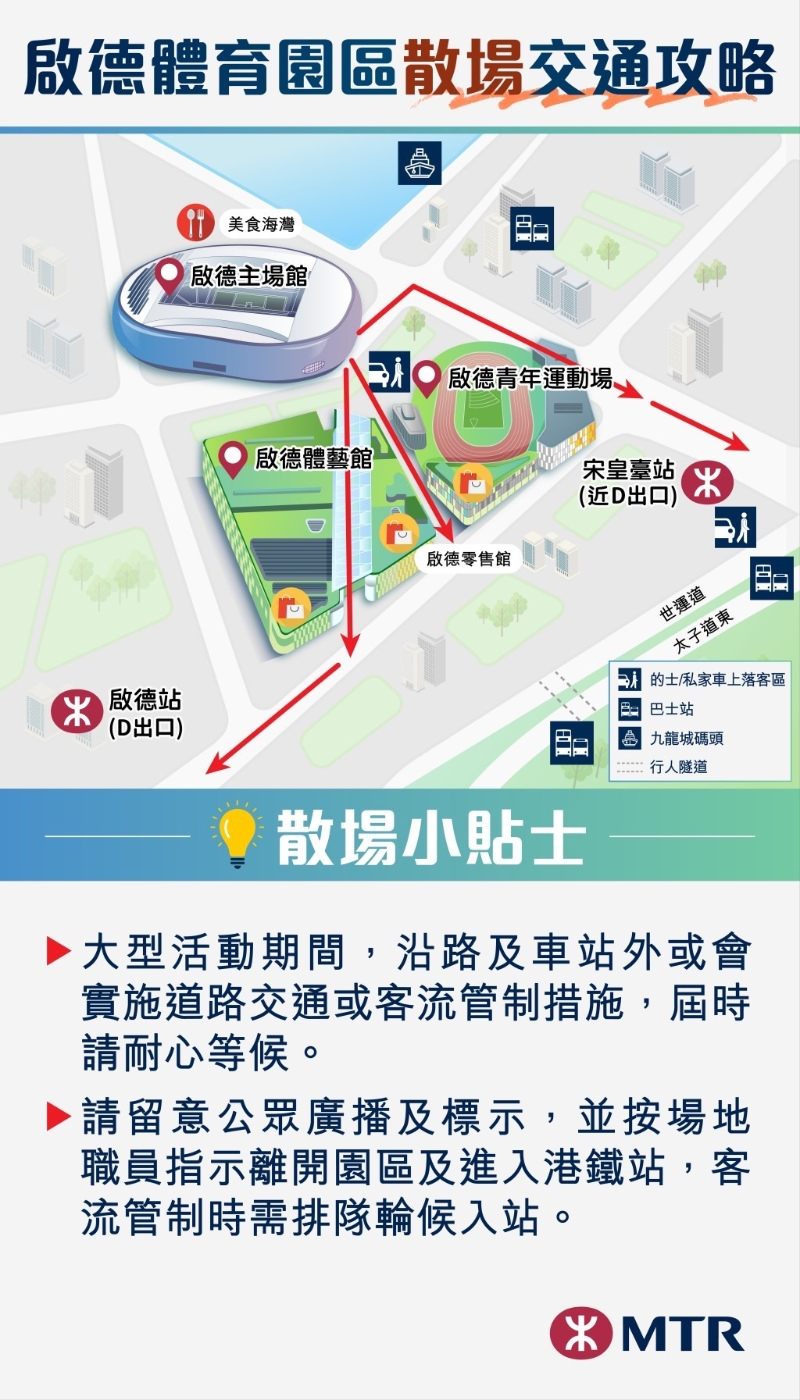 啟德體育園區散場交通攻略。(圖源:港鐵)