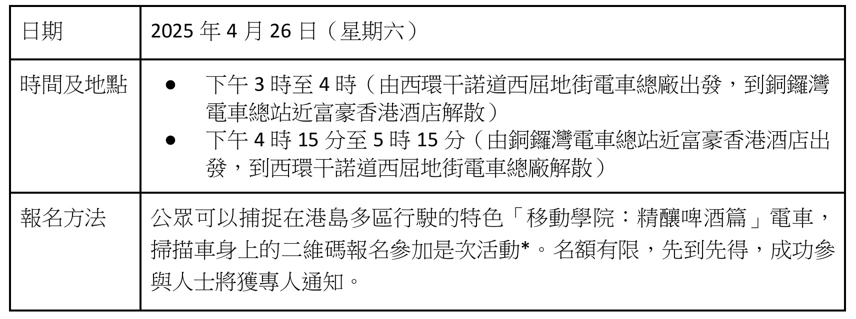 市民有機會免費乘電車歎本地精釀遊覽香港。