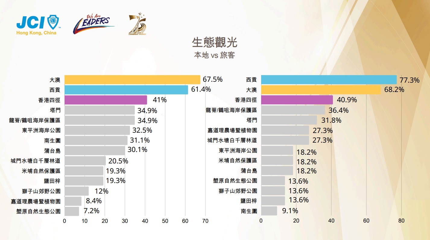 “香港無處不旅遊”調查:生態觀光成新趨勢 產品應從食買玩調整香港新聞網5月7日電 (記者 黃璇)國際青年商會中國香港總會(JCIHK)近日在一場新聞發佈會上揭曉了“香港無處不旅遊”的問卷調查結果,顯示海外受訪者對生態觀光的偏愛日益明顯,並指出深度遊及具故事性的歷史古蹟和藝術文化景點成為新興旅遊趨勢。 調查於今年3月至4月進行,涵蓋了836名港人及410名來自35個國家和地區的海外人士。主辦機構國際青年商會中國香港總會會長王師堯在發佈會上表示,此次調查是香港首次同時針對本地居民和外國遊客的旅遊偏好進行深入研究,具有重要意義。