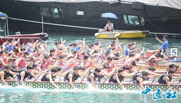 香港中通社圖片 嘉年華亦設有不少“打卡”佈置,包括“大熊貓龍舟”雕塑便吸引眾多旅客合影留念,也有小朋友坐上“龍舟”,拿起船槳模擬在水中“划船”。 龍舟競渡無疑是香港端午假期的重頭戲,與內地以村為單位的傳統不同,香港龍舟隊多由高校或機構組成,展現現代都市的團結精神。 5月31日,在赤柱,有“香港小希臘”之稱的海灘化身國際賽場,200支龍舟隊伍、約5000名來自全球的選手齊聚赤柱,鑼鼓喧天,熱鬧非凡。 “沒有想到香港連端午節氣氛都這麼好,海邊全是人。”有來自東莞的遊客提到,“熊貓扒龍舟”的佈置可愛、有心思,海邊對應龍舟,形容是非常好的構思。 不少內地客均表示,香港端午節氛圍濃厚、活動眾多,將中華傳統文化演繹得淋漓盡致,成為旅客感受節日魅力的絕佳之地。 因應旅客的到訪,有在星光大道擺攤的小食店店主指出,端午節生意額較平日上升約5倍。 根據攜程旅行資料,香港成為內地客端午假期出境遊熱門目的地第二位,僅次於日本。(完) 【編輯:劉春】