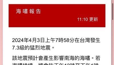 日本發佈海嘯預警 預計今日抵達高度為3米左右分享到: