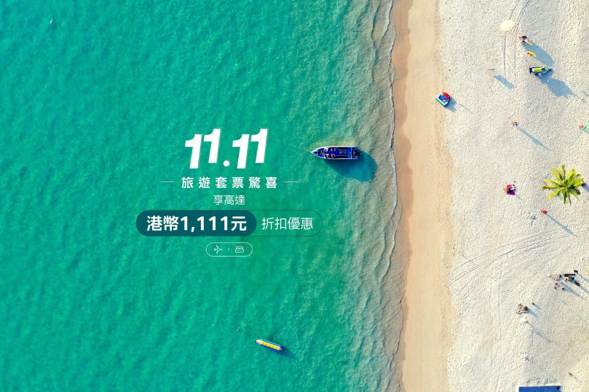 預訂日期:2025年10月22日至2025年11月12日 旅遊日期:2025年10月22日至2026年1月31日 • 憑指定優惠編號【5NNOVCH5K】預訂兩位或以上“機票+酒店”旅遊套票,並入住4晚住宿或以上,尊享每個預訂港幣1,111元折扣。名額有限,先到先得。; • 憑指定優惠編號【NOV25CH5K】預訂其他“機票+酒店”旅遊套票,亦享每個預訂港幣111元折扣。 國泰假期將會推出更多雙十一震撼優惠,敬請期待!(完) 【編輯:陳卓儀】