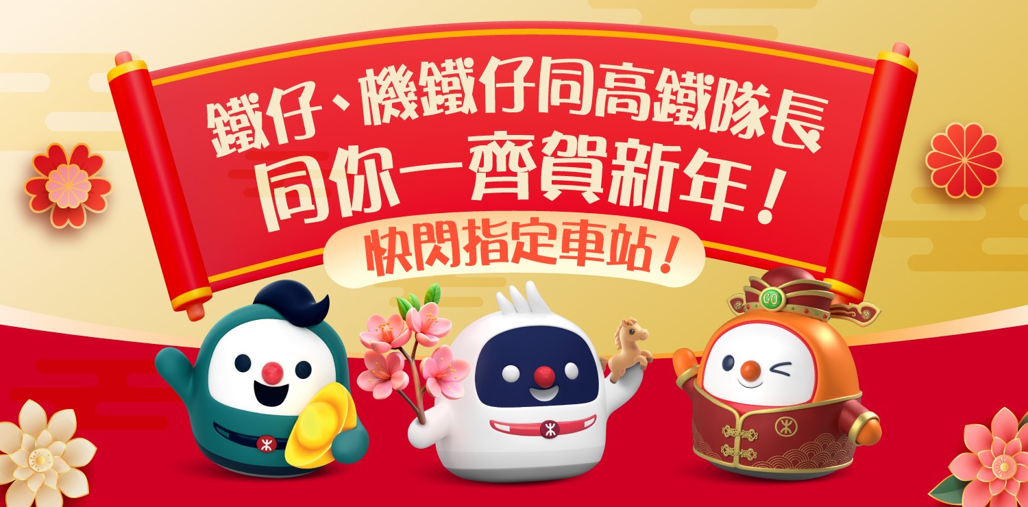 今年港鐵賀年車票設計將延伸至港鐵銅鑼灣、尖沙咀、大圍及馬場站,透過剪紙圖案,配上風車裝飾打卡位,象徵福運滾滾來。同時港鐵更特別加入由本地音樂組合“農夫”配音的祝福聲效,於乘客入閘時祝福大家行運大吉。乘客更可在上述主題車站的特色打卡位(馬場站除外)拍照留念,增添節日儀式感。於大圍站打卡更可掃碼獲取港鐵商場圍方優惠券,每週款式不同,數量有限,送完即止。 港鐵虛擬服務大使Tracy新裝迎馬年 拜年即抽即中獎 由2月13日至2月26日,港鐵虛擬服務大使Tracy換上馬年節慶造型,於9個指定車站(鰂魚涌、啟德、羅湖、機場、柯士甸、中環、金鐘、銅鑼灣及尖東站)向乘客送上新春祝福。乘客只要於上述車站與Tracy拜年,即可參加“馬年轉大運”即抽即中獎,有機會獲得車站商店及港鐵商場購物優惠券等豐富獎品。更可同時參與終極大抽獎,有機會贏取最新型號智能手機、港鐵全年免費車票或港鐵商場購物優惠券,為旅程增添好運與節日氣氛。 自製個人化電子揮春 與高鐵隊長及親朋好友一同迎春接福 高鐵香港西九龍站B1層近票務大堂特設新春立體裝置,高鐵隊長化身財神,帶同奔騰中的駿馬及紅噹噹的吉祥新年裝置與乘客合照。現場更設有高鐵隊長特別設計的電子揮春,乘客可加入個人樣貌,創作獨一無二的設計,免費下載與親友分享節日歡樂! 3大吉祥物新春快閃大派利是