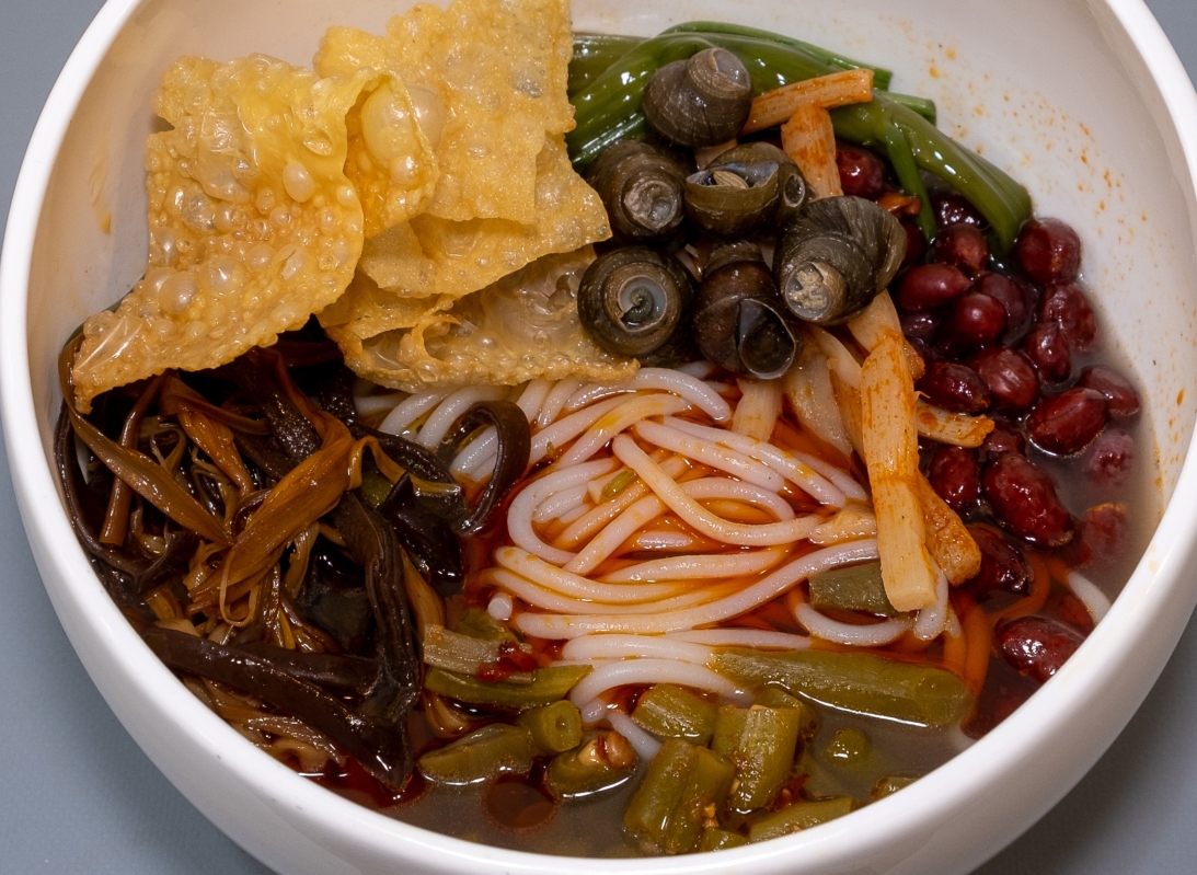 香港新聞網9月30日電 螺螄粉是廣西壯族自治區柳州市的特色小吃之一,具有辣、爽、鮮、酸、燙的獨特風味,是柳州最具地方特色的名小吃。螺螄粉的味美或因其湯料獨特,由螺螄、山奈、八角、肉桂、丁香、多種辣椒等天然香料和味素配製而成。 2018年8月20日,“柳州螺螄粉”獲得國家地理標誌商標。2008年,柳州螺螄粉手工製作技藝入選廣西壯族自治區第二批非物質文化遺產名錄。2020年被列入國家級非物質文化遺產名單。 螺螄粉的大風,在2022年也吹來了香港。短短幾月內,香港接二連三地開了不少店鋪,下文將介紹最火爆的三家!褒貶不一,請各位看官理性看文。 辣螺友 辣螺友是一家剛開張不久的小烤螺店,位於葵興工業區,店面雖不大,但其菜品質素令人驚艷!辣螺友螺螄粉(45港幣)的配料包括黑蘑菇、花生、炸豆腐和腌制胡蘿卜等。煎蛋(8港幣)也是必點,整體份量大,性價比高。 從口感上看,辣螺友螺螄粉的湯底可以吃出螺肉的鮮甜,而且螺肉很多,入口鮮美,辣度和鹹度適中,不會太重,相信比較適合香港人的胃口。米粉很有嚼勁,Q彈爽滑,蔬菜和其他配料也很有咬勁。