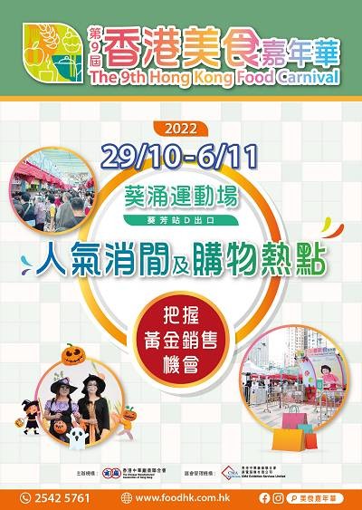 圖片來源:香港美食嘉年華官網 第9屆香港美食嘉年華 日期:2022年10月29日至11月6日 地點:新界葵涌區興盛路93號葵涌運動場(港鐵葵芳站D出口) 開放時間:10:30am-7:30pm(每天結束前30分鐘及最後一天結束前1小時停止入場) 官網:www.foodhk.com.hk Facebook值得注意的是,每日首1000名入場的市民更可獲赠禮物一份哦,大家早早去領取禮物吧!