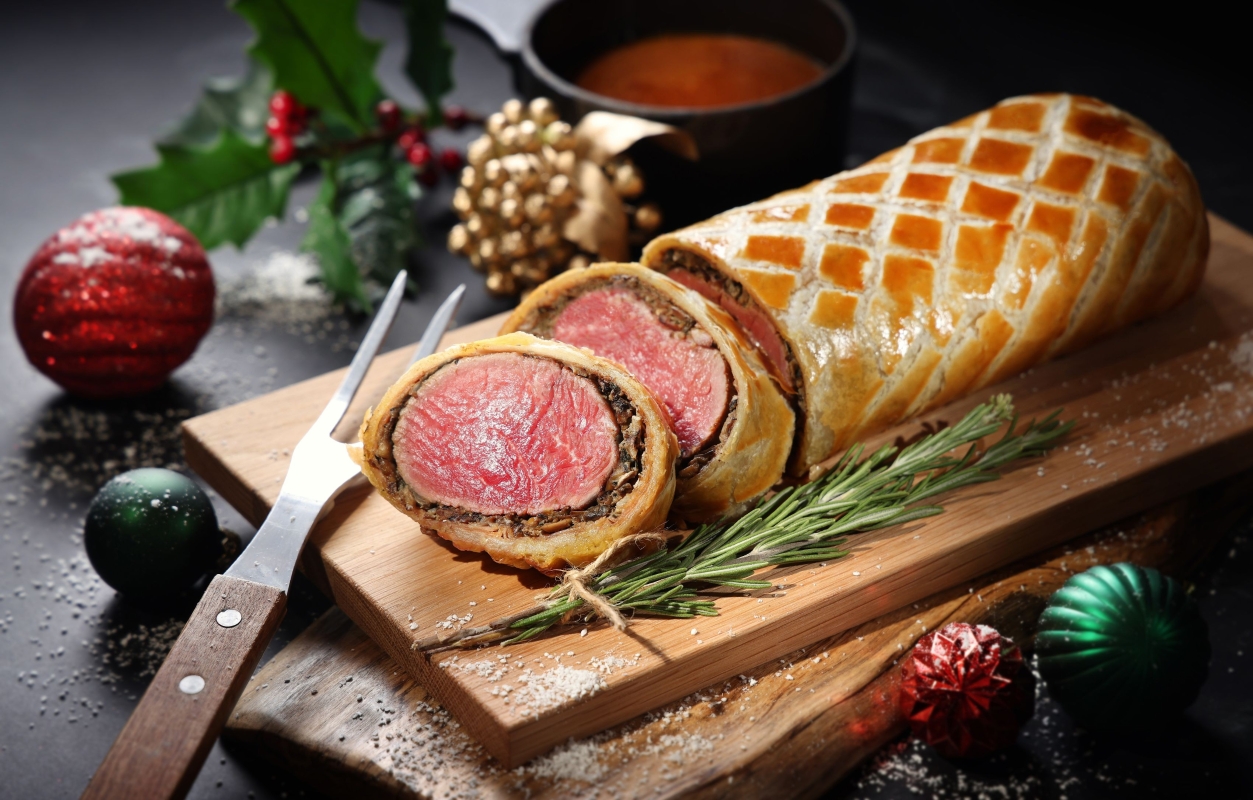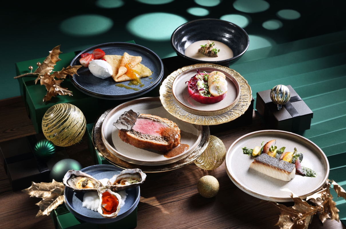 威靈頓小牛肉 海岸扒房——6道菜聖誕套餐 位於酒店最高層的西餐廳景觀最好,推出節日午市套餐,可選擇2道菜或3道菜,價錢分別$278及$308。 而節日早午餐則包括5款芝士、冷肉、燒火雞等,同時可任食海鮮吧,品嘗加拿大雪場蟹腳、原隻虎蝦、原隻波士頓龍蝦等冷盤,每位$988。 節日晚餐有6道菜,包括日本拖羅他他、阿拉斯加黑鱈魚、威靈頓澳洲牛柳、法式橙酒班戟等,每位$1298起。而除夕夜特設款式,就有龍蝦湯、澳洲M5和牛他他、野生鱸魚及炭烤穀飼澳洲牛柳,每位$1398起。