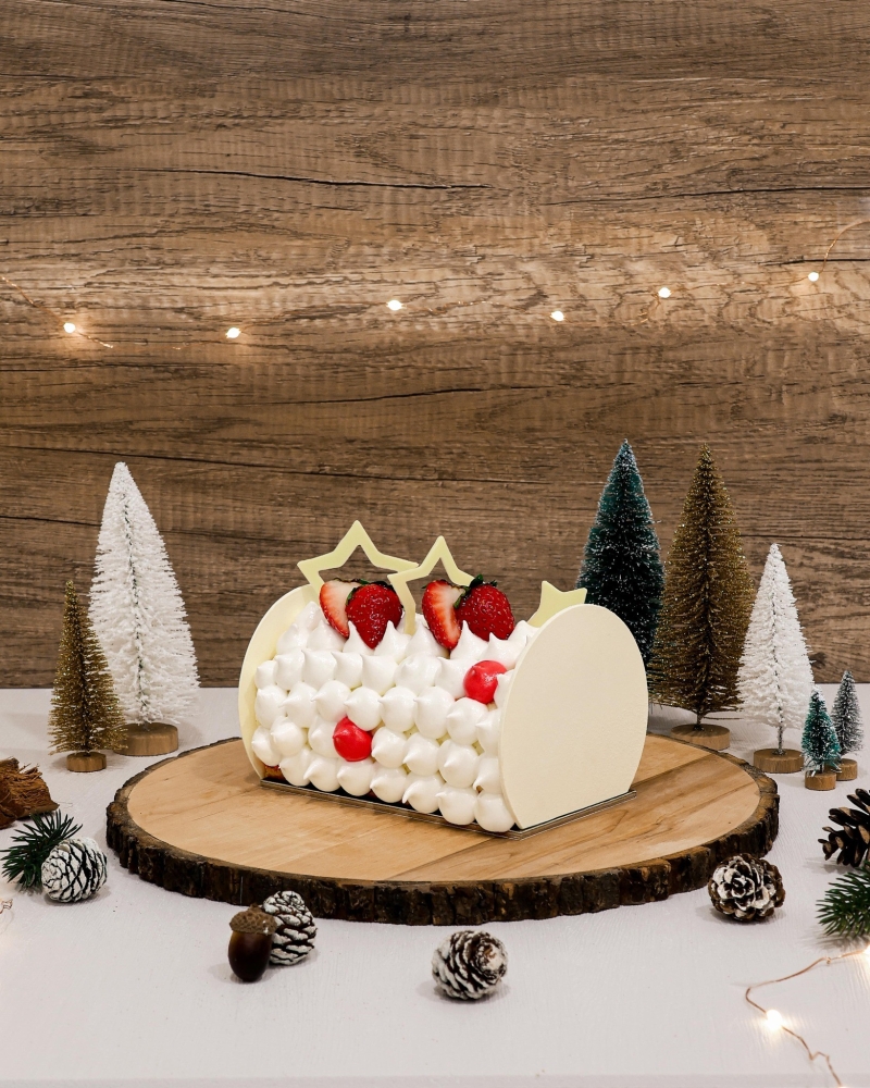 冬日士多啤梨樹幹蛋糕(圖片:當文歷餅店) 冬日士多啤梨樹幹蛋糕盛載日本士多啤梨果醬同士多啤梨海綿蛋糕,食客可享受到鮮果馥香得滋味。外層圓圓的蛋白霜猶如小雪球一樣,頂層擺上日本原粒士多啤梨,造型精緻可愛。冬日士多啤梨樹幹蛋糕即日起以HKD$388於所有分店及網上發售。