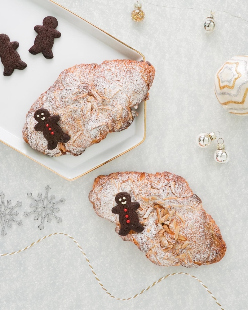 杏仁牛角包配朱古力薑餅人曲奇(圖片:當文歷餅店) 除了聖誕樹,聖誕節怎能少了可愛的薑餅人呢?杏仁牛角包盛載著豐富的杏仁奶油,節日期間限定還有可愛的朱古力薑餅人曲奇裝飾。聖誕限定杏仁牛角包全線分店有售。
