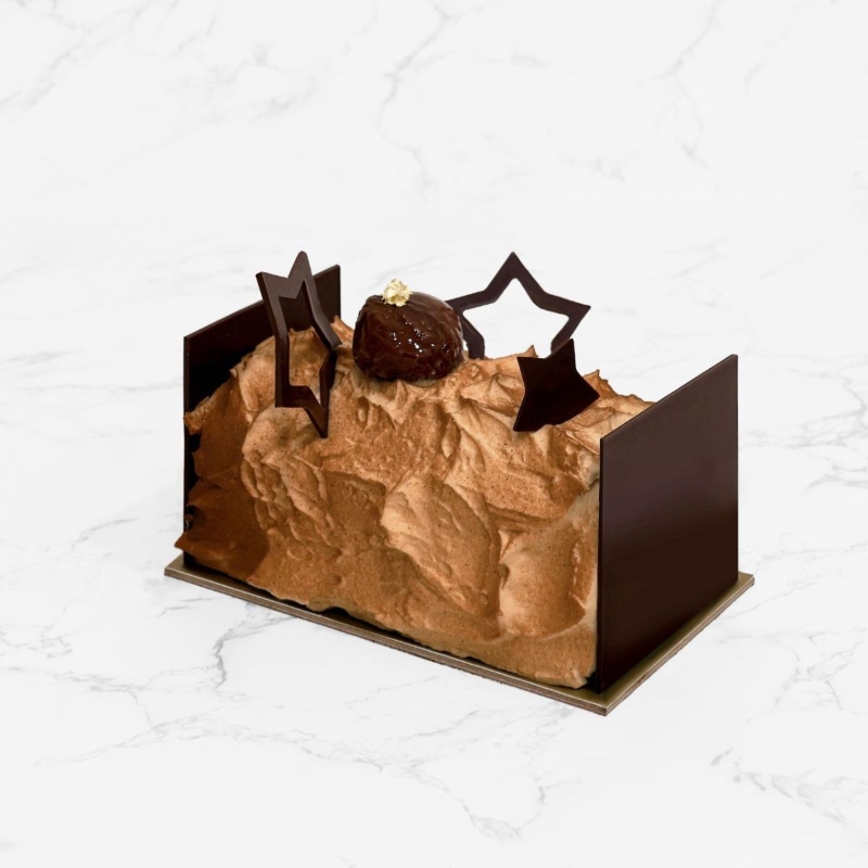 星星栗子樹幹蛋糕(圖片:當文歷餅店) 星星栗子樹幹蛋糕造型簡潔內裡卻藴藏多重驚喜,蛋糕內濃厚的焦糖牛奶朱古力慕絲包裹着焦糖海綿蛋糕,配上綿滑的栗子蓉和榛子朱古力脆片餅乾,底層則是雲呢拿牛油曲奇,層次豐富,每一口都能品嚐甘香的栗子。配上原粒糖漬栗子及星型朱古力片作點綴,增添節日歡樂氣氛。
