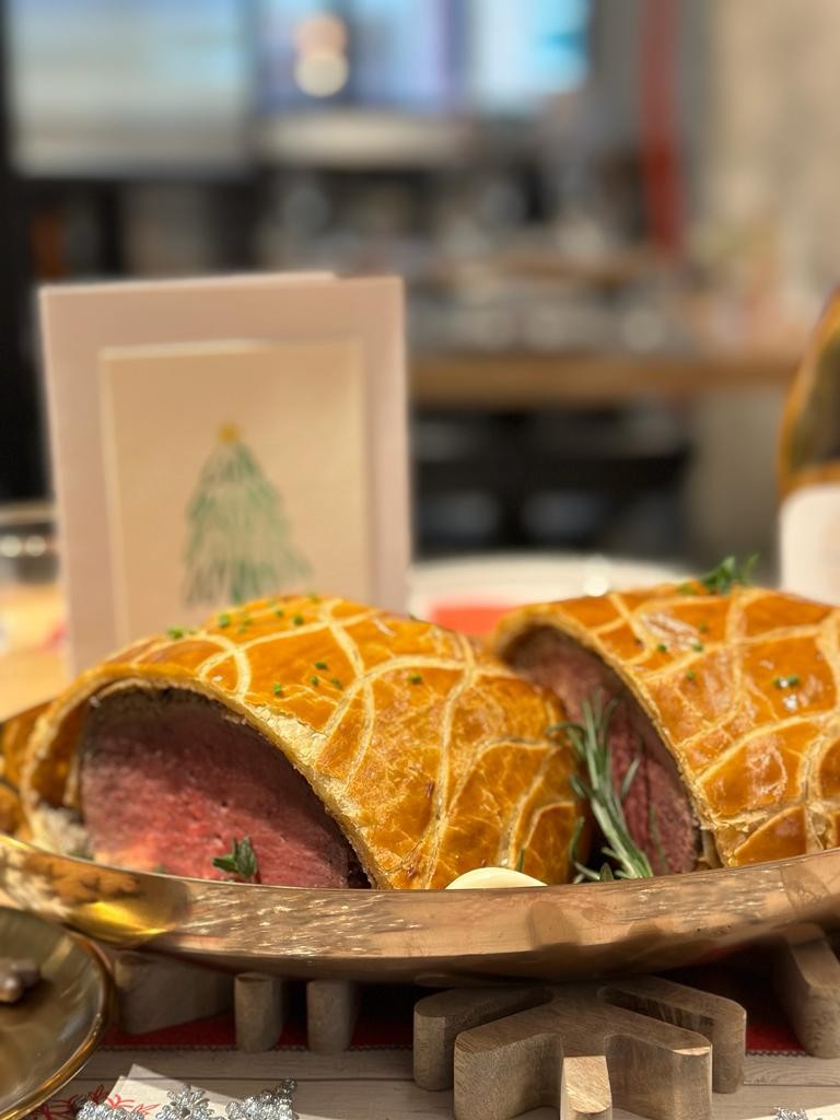 聖誕士多啤梨慕斯蛋糕(圖片:Town 93 Café) Town 93 Café的主廚Lionel Bodros曾於米芝蓮三星餐廳Joël Robuchon Hong Kong擔任糕餅總廚,他在香港工作和居住近10年。今次Lionel和他的團隊以"Let It Snow"為主題,在全新打造的聖誕套餐中加入經典的法式紅酒燉牛肉,並推出聖誕特別款式的法式糕點。Town 93 Café本月還首次推出精選烤肉佳餚,以融入法式烹調技巧的威靈頓牛扒搶盡焦點。