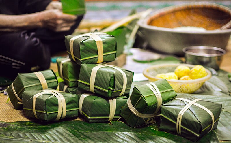 香港新聞網1月16日電 “肥肉醃藠紅對聯,幡桿炮仗綠年粽”,農曆新年到來,家家戶戶摩拳擦掌,準備過上新春佳節。越南文化與中華文化有諸多相似處,但說到過年以及飲食文化,還是有許多獨特的地方。今天就讓我們來認識越南的春節,以及認識每到新年的招牌食物——越南粽。 越南過年吃粽子 粽子是越南過年必不可缺的食物。越南北部粽子是四方形,代表地,厚糕是圓形,代表天。 用芭蕉葉包的四方形大粽子,一般是以黃豆或綠豆豬肉爲餡,越南北部過年還會準備厚糕,也是一種糯米做成的食物,厚糕要白要軟且韌,在中南越有些地方會準備“祖糕”,以紅糖製作,但厚糕和祖糕皆已漸漸失傳。