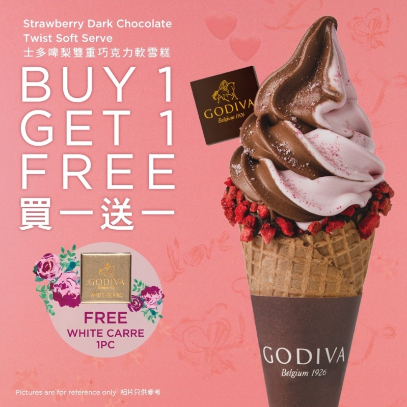 GODIVA驚喜季節限定優惠 士多啤梨雙重巧克力軟雪糕 買一送一 * 同時可免費獲贈GODIVA片裝白巧克力乙片,延續香甜巧克力的雙重滋味! 優惠期:2023年2月18至19日 每店*每天下午1時起限售200套軟雪糕,售完即止。 售價:HK$55兩支(原價HK$110) 【編輯:黃璇】