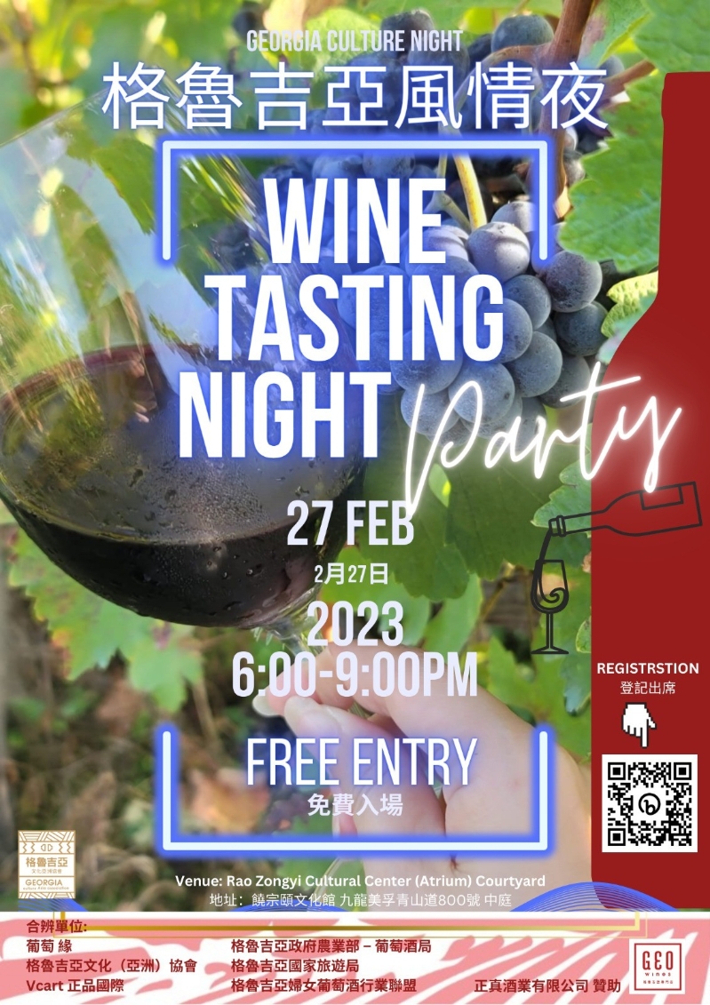 “格魯吉亞風情夜”活動詳情 日期:2月27日(星期一) 時間:晚上6時30分至9時(活動晚上7時正式開始) 地點:饒宗頤文化館(九龍美孚青山道800號) 活動內容:由專業酒評家Sammy Leung带領品嚐多款格魯吉亞葡萄酒,另設品酒工作坊、佳餚品嚐及抽獎環節。 【編輯:黃璇】