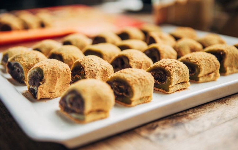 驢打滾入口即化,香甜入心 驢打滾成品黃、白、紅三色分明,煞是好看。因其最後製作工序中撒上的黃豆粉,猶如老北京郊外野驢撒歡打滾時揚起的陣陣黃土,因而得名“驢打滾”。做好的“驢打滾”外層粘滿豆粉,呈金黃色,豆香餡甜,入口綿軟,別具風味,豆餡入口即化,香甜入心。 3、滷煮火燒