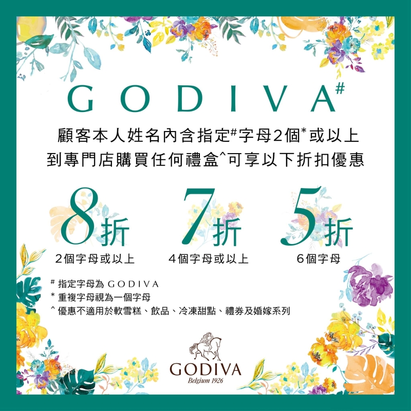 GODIVA推限時身份證優惠!英文姓名含指定字母即有折分享到: