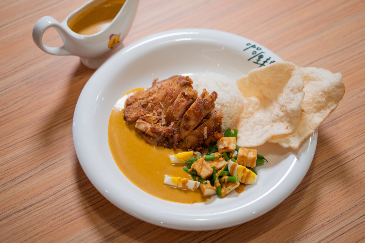 新加坡咖喱“雞爸隆爸”用了13種香料和蝦醬。 “咖喱邦”除了提供主打的正宗咖喱菜式外,還有多款別具特色的美食和飲品選擇。對於素食者而言,“咖喱邦”有多款素食友善的餐點選擇,包括清爽酸甜的阿卡酸瓜,以菠蘿和多種蔬菜醃製而成,能夠唤醒味蕾,增添食慾;素肉粟米筒則以素肉、番茄和不同香料,配上香脆的粟米筒,口感豐富。另外,不能不提的是“咖喱邦”的招牌甜點——焦糖爆谷紅豆千層,千層麵包配上“咖喱邦”特製的紅豆流心爆漿餡料,再以 焦糖爆谷點綴,酥脆可口、甜度適中,讓您感受味覺和視覺的雙重享受。
