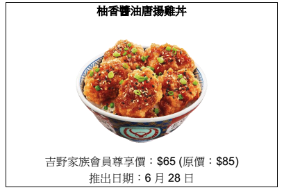 吉野家以鹹香開胃的明太子配上日本溫泉玉子組成味道濃郁的醬汁,包裹着口感彈牙的冰涼讚岐冷烏冬,最適合於炎炎夏日享用。 柚香醬油唐揚雞丼