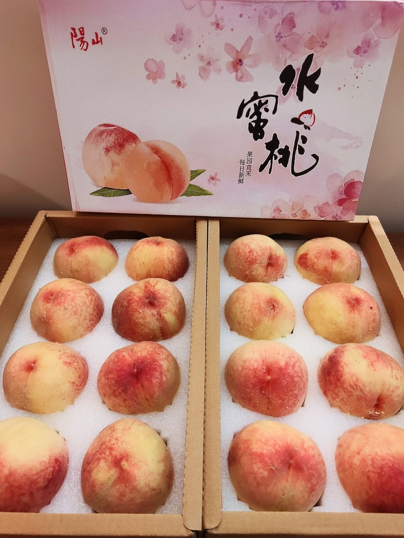香港新聞網7月12日電 無錫陽山水蜜桃又再掀起熱潮!每年6、7月,除了是吃日本水蜜桃的季節外,近年內地培植的陽山水蜜桃,也是一個不錯的選擇,質素日益精良改進,遇上當造期味道更不輸日本出品。近月,陽山水蜜桃再度掀起搶購潮,不少網友更為食靚桃,專程前往深圳超市,大手入貨。 陽山水蜜桃獲追捧 深圳盒馬超市¥10/個瘋搶 陽山水蜜桃產期與日本水蜜桃相近,近月已在內地超市上市,不少識貨港人亦把握機會,前往深圳大手入貨。在facebook群組“深圳大灣區吃喝玩樂開心分享區”就掀起陽山水蜜桃討論熱潮,不少網友上深圳吃喝玩樂之餘,亦不忘到內地連鎖超市“盒馬鮮生”入手陽山水蜜桃。這些國產陽山水蜜桃,果實又大又圓,果品白裡透紅,賣相媲美日本靚桃,售價卻差一截,一盒4隻的陽山水蜜桃定價人民幣¥39.9,平均$10港元一個。不少網友也大讚抵食,性價比一流,往往一到貨,即在群組引起討論。