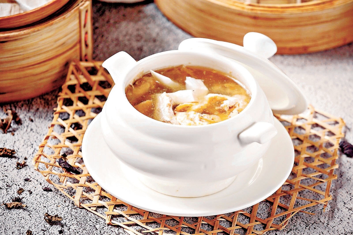 四季椰子雞湯任飲。 午市點心放題供應逾30款點心美食,全部由資深廚師團隊每日新鮮製作,即叫即蒸。除了酒樓常見的一盅兩件,當然不少得“名館”主打的新派款式。包括賣相精緻的銀湖天鵝酥、皮薄餡靚的名館筍香蝦餃皇、一咬爆汁的黑金流沙包、香脆可口的脆奶一口酥等。當中必試的銀湖天鵝酥,天鵝造型美麗,尾部的層次更充分體現了師傅的功力。金黃酥脆的表層包裹着微甜的紫薯蓉,除了賣相精緻外,咬落外皮酥香。裏面的紫薯餡料甜而不膩,口感十分富有層次感。 另有十多款精選美食如鎮江水晶餚肉、桂花鐵棍淮山、雲南涼拌貓耳朵等同樣任叫任食。午市任飲私房靚湯包括四季椰子雞湯及霸王花豬腱湯,也有十多款招牌特飲,當中椰汁紅豆冰為必飲之選,消暑一流。 【編輯:黃璇】