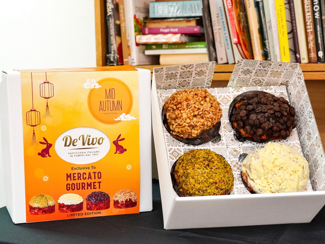 Mercato Gourmet聯乘意式餅店De Vivo,推出中秋節意大利夾心蛋糕禮盒。 喜歡堅果類甜點的食客可嘗試西西里開心果意大利夾心蛋糕,表面佈滿以香橙調味的白朱古力醬和開心果碎,內餡是西西里開心果醬及朱古力碎,濃郁的開心果香和朱古力完美交織,鬆軟的蛋糕口感,每一口盡是滋味。 另外榛子意大利夾心蛋糕外層裹上由意大利坎帕尼亞地區出產的優質榛子、牛奶朱古力和黑朱古力碎,層次分明的蛋糕填滿帶有柑橘香氣的榛子醬,口感豐富,令人難以抗拒。 愛酒之人必定愛上意大利檸檬香甜酒口味,內餡加入蘇連多Sorrento檸檬香甜酒,配上白朱古力及阿馬爾菲海岸檸檬而製成的奶油,帶有濃醇的酒香與香甜的檸檬香氣,味道清新,令人彷如置身於阿馬爾菲海岸般。
