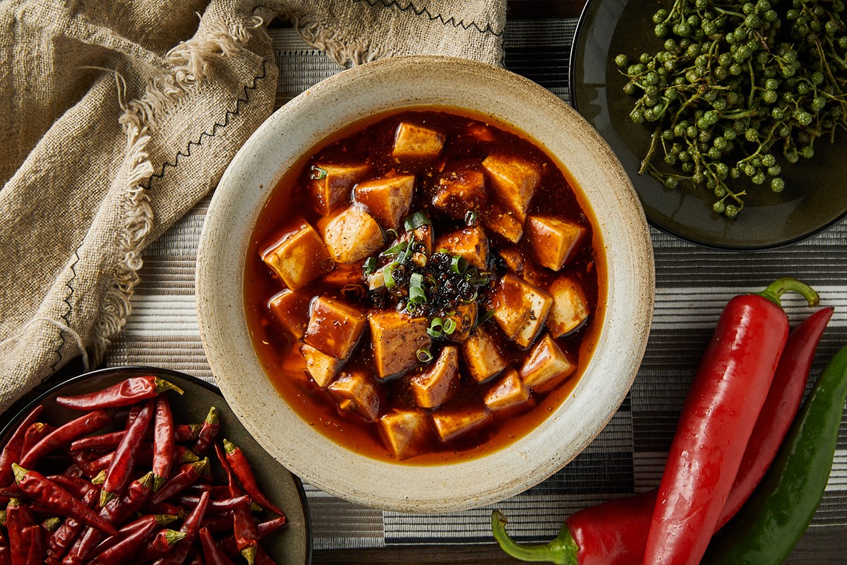 家鄉風味麻婆豆腐。 傳統與創新的融合:當永恆的優雅碰上摩登 Chilli Fagara 麻辣燙的菜式薈萃了傳統和創新的元素,陳師傅的菜式傳承了家族口味,賦予每道菜式獨一無二的魅力。擁有50年烹飪經驗的陳啟英師傅為菜單注入了生命力,以優質食材呈獻出豐富多彩的風味。餐廳精心策劃了多道保留川菜真實精髓的素食選擇,滿足不同客人的特定飲食需求。同時師傅勇於嘗試以獨特的食材,烹飪出一道道符合現代大眾口味的菜式。