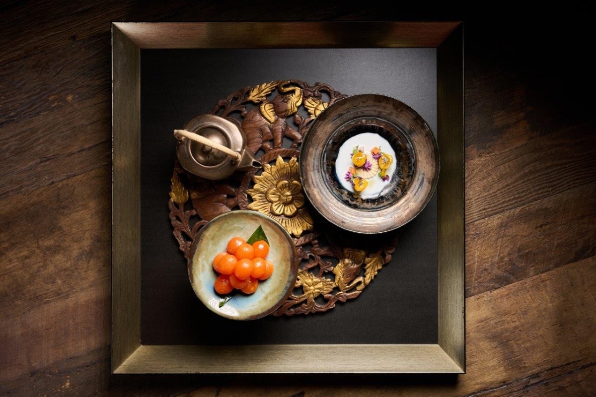 來自曼谷的Nuch主廚曾任職於多間米芝蓮星級餐廳。 餐廳提供兩款風味獨特的嚐味套餐,分別是時令菜單和招牌菜單。 兩款菜單的美食體驗都始於開胃小食,瞬間喚醒味蕾。四款風味突出、色彩豐富的小食激發所有感官,為接下來的泰味旅程做好準備。 主廚推薦嚐味菜單 招牌菜單呈獻了Nuch主廚大膽出眾的廚藝創作。椰香葵花雞湯是一個絕佳的例子。這道經典的椰香湯,放著包裹糯米和野生蘑菇的雞肉卷,以醃製小洋蔥珍珠作點綴,鮮味濃郁,口感豐富。