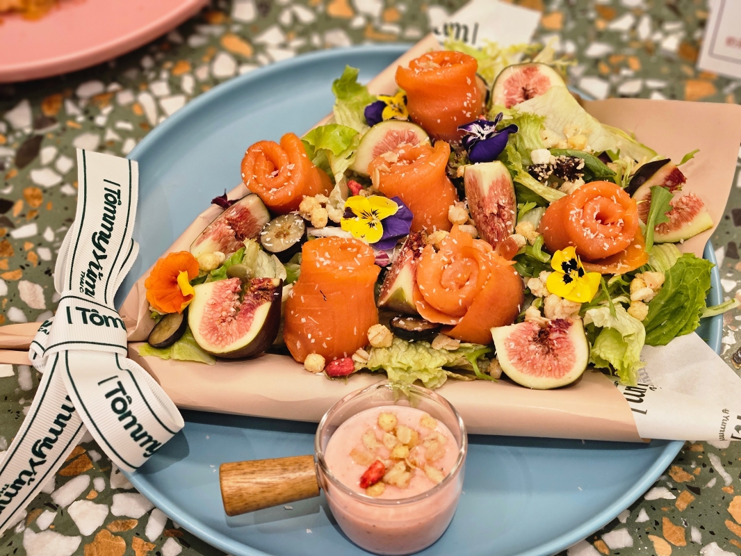 煙三文魚花束沙律。(香港中通社記者 黃璇攝)