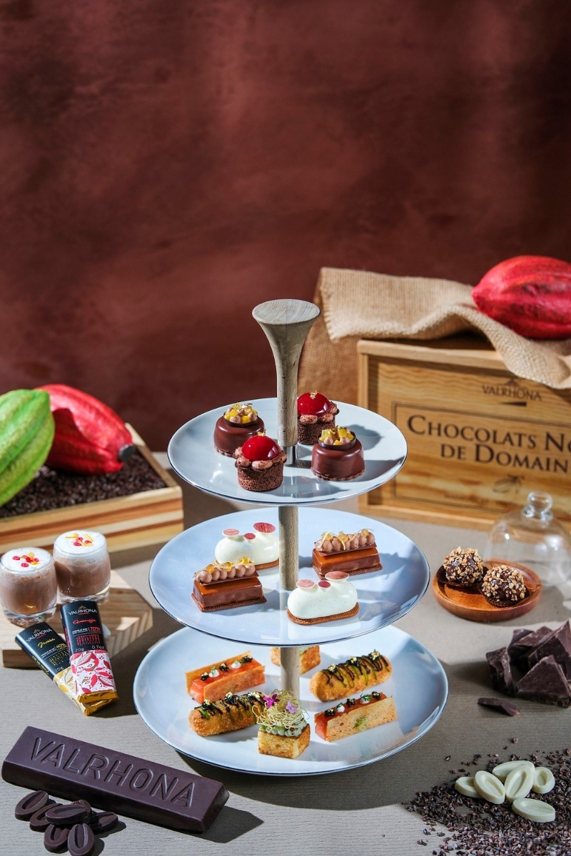 香港新聞網3月7日電 法國Valrhona是逾百年歷史的朱古力品牌,以柔滑細膩的朱古力廣受各地甜品師青睞。即日起至5月31日,香港嘉里酒店聯乘Valrhona於大堂茶座推出“春日獻禮”朱古力下午茶,以香濃朱古力和其他時令食材入饌,帶來一場甜蜜盛宴。 一系列朱古力甜點由酒店行政糕餅總廚Jérôme Husson設計,以不同濃度的朱古力搭配時令食材,風味各有特色。黑朱古力蕎麥茶蛋糕卷用上科曼圖80%黑朱古力,香醇濃郁,搭配酸甜可口的紅桑子啫喱,味道豐富。牛奶朱古力柚子蛋糕以香脆榛子果仁脆脆搭配吉瓦那40%牛奶朱古力,為柔滑香醇的朱古力增添豐富口感,並散發清幽淡雅的柚子氣息。白朱古力藍莓蛋糕選用了歐帕麗絲33%朱古力,以藍莓的酸味平衡白朱古力的甜膩,帶來一抹清新。黑朱古力熱情果蛋糕則以杏仁蛋糕為餅底,配上峇里斐68%黑朱古力,濃而不膩。