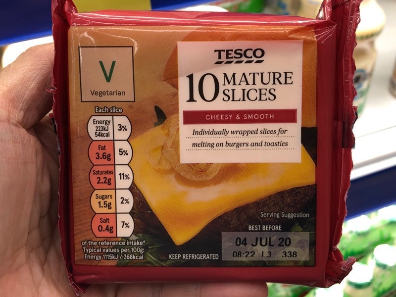 Parmigiano Reggiano(Organic PDO Cheese aged more than 12 Months)。 加工芝士:普通加工芝士 1. Tesco(10 Mature Slices Cheesy & Smooth) 要說到放在漢堡上的芝士,怎少得加工過的片裝芝士?Tesco為英國大型連鎖超級市場,品牌的Mature Slices Cheesy & Smooth榮獲消委會4星半評價,在4款普通加工芝士當中,這款芝士除了鈉含量低過其他3款品牌,鈣含量對比另一款4星半評價的芝士高出329毫克/100克,大家關心的總脂肪亦相對低,難怪能獲得4星半評價。 蛋白質:14.7克/100克 總脂肪:19.5克/100克 鈉:683毫克/100克 鈣:967毫克/100克 磷:1040毫克/100克 消委會評分:4星半