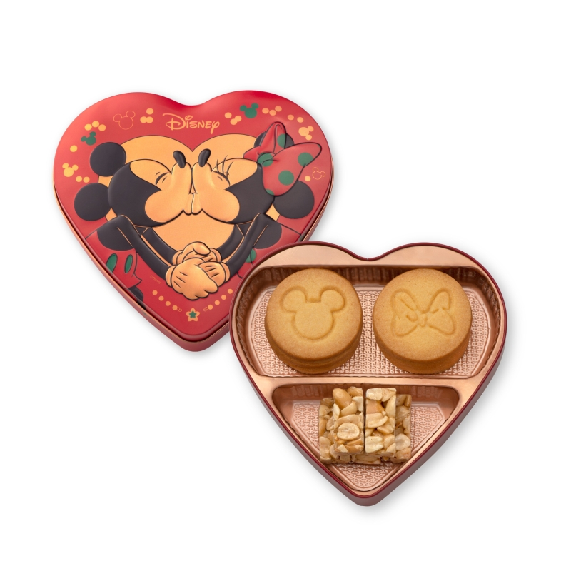 迪士尼米奇米妮過禮盒造型禮盒。 而第二款則是“迪士尼米奇米妮精緻心形禮盒”,優雅的紅色心形設計與緊握著手的米奇米妮,相映成趣,呈現心心相印的寓意,禮盒則盛載著“米奇曲奇”、“米妮曲奇”及“花生脆糖”。米奇米妮送上甜蜜美滿的祝福,並見證着這個人生重要的里程碑,為新人們製造深刻又洋溢甜蜜幸福的快樂回憶。
