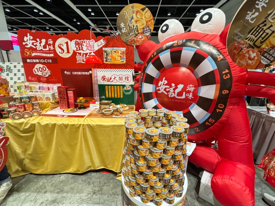 安記海味今年繼續推出“1元鮑魚”優惠。(香港中通社記者 黃璇攝) 美食博覽設有四大主題日,包括大江南北美食、美酒佳釀、日韓文化及身心靈健康。 有食品參展商向媒體表示,“知道他們北上消費,希望多些了解,例如香港市民喜歡食蟹,我們都希望把元素研發我們的新產品,希望令他們在下半年多些支持我們的店。” 本次展覽不設實體門票銷售,市民可以購買電子入場券或在會場入口收費站以電子支付入場,憑30元門票可參觀“美食博覽”、“家電·家居博覽”及“美與健生活博覽”,若參觀尊貴美食區便要多加10元。