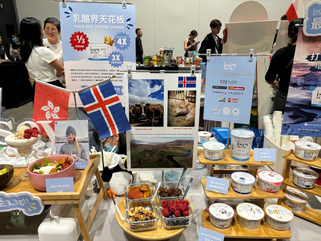 冰島乳酪Ísey Skyr今年繼續參展美食博覽。(香港中通社記者 黃璇攝) 為了方便旅客,今年博覽有超過90個展商提供獲認證的清真食品,大會專門設計了標誌屆時在攤位展示、方便識別。香港貿發局副總裁張淑芬出席傳媒預覽時表示:“不一定要是回教徒才喜歡吃清真食品的,因為很多時清真食品都是比較指定的標準,所以我們都覺得愈來愈多人有興趣,都是關注及想吃這類食物。” 美食博覽早上10時到晚上10時開放,最後一日提早至下午6時,期間設有不同攤位提供試食,每日會有快閃優惠及抽獎活動,期間亦有“美食商貿博覽”及“香港國際茶展”,五項展覽共有逾1800個展商參加。(完) 【編輯:黃璇】