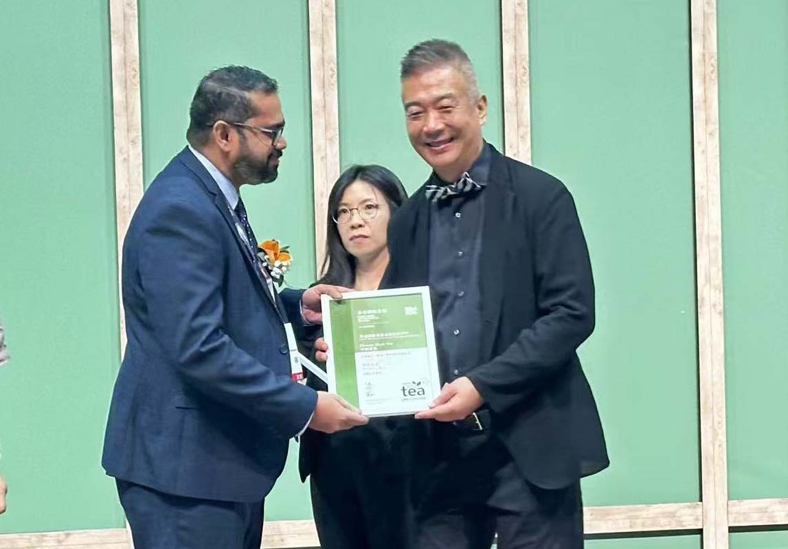 斯里蘭卡茶葉委員會主任Upul Priyantha Wimalasiri(右二)為虎標公司總裁楊小宏(右)等獲獎者頒發獎 香港虎標肇始於1999年,作為港九茶葉行商會資深會員、香港食品委員會及南北行公所成員,多年來始終致力於深耕茶葉領域。香港虎標品牌旗下的金芽普洱,源自雲南臨滄,充滿山野氣韵。經傳統渥堆發酵工藝,由昆明茶廠譚梅大師監制而成,無論表里,茶香濃鬱,滋味隽永。 【編輯:曹文毓】