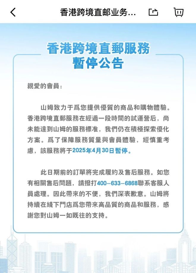 山姆4月底取消香港跨境直郵,或與這些因素有關