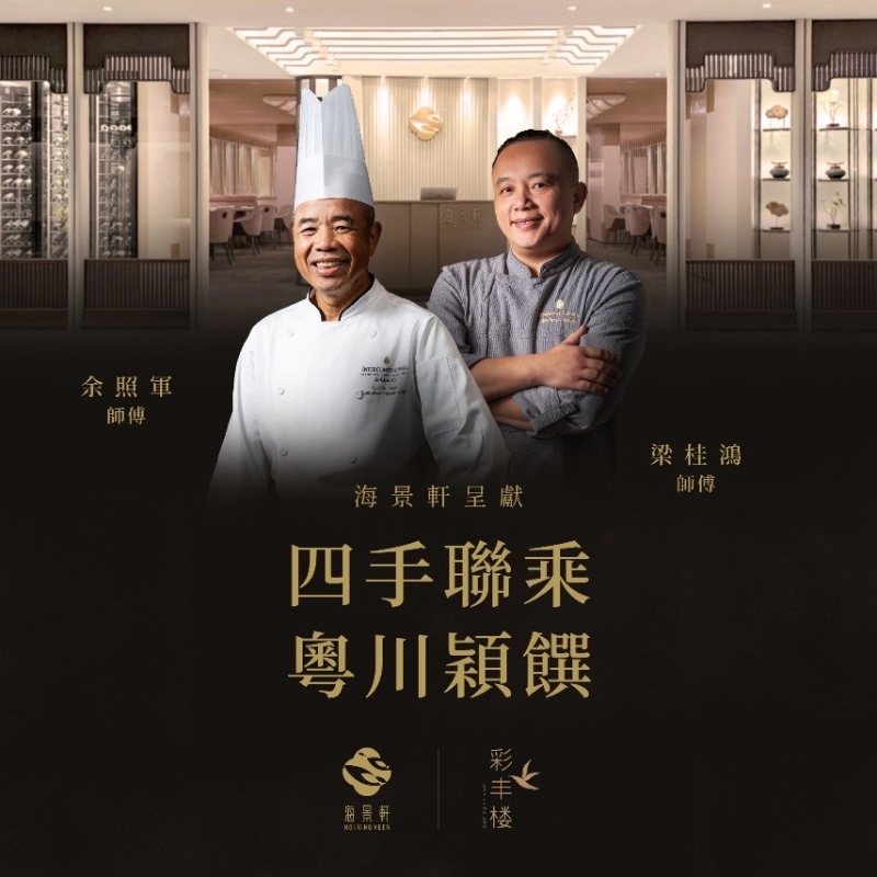 這份四手聯乘品味菜單巧妙融合了粵式優雅與川菜韻味,呈現中菜的多層次風采。 前奏以清新爽口的冷盤揭開序幕,包括紫蘇玉女瓜及桂花蜜脆鱔,為經典粵式冷盤注入脆香新意。隨後登場的是鮮嫩的客家風味手撕雞,以及溫潤細膩的酸蘿蔔湯過橋蚌仔,帶來舒心與層次分明的口感平衡。黃金蟹盒及麻辣小龍包展現了粵菜精緻風格與川味元素的和諧交融;而海南黄椒醬蒸星斑球則在粵式海鮮底蘊之上添上一抹熱帶鮮亮。 壓軸登場的是烈焰竹炭和牛肋肉,搭配竹炭,煙燻香氣與現代演繹交織成大膽戲劇化的主菜。天府擔擔麵延續此章節,將經典川味精緻呈現。尾聲則由茉莉花生酪和酥皮雪燕杏仁蛋撻劃下圓滿句點,為整場餐飲體驗締造感官上最美好的收結。 這場“粵川穎饌”不僅展現兩位大師的技藝,更為粵菜注入嶄新靈感與活力,引領香港粵菜走向更寬廣、更具創意的發展道路。 推廣詳情: 日期:2025年7月24日至9月30日 時間:午餐及晚餐供應 地點:B2樓層,海景軒 【編輯:黃璇】