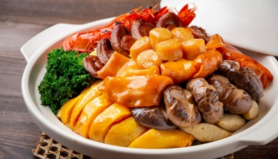 矜貴外賣盆菜盛宴 與摯親相聚賞滿月,安坐家中品嚐萬豪金殿的節慶外帶盆菜,寓意闔家團圓、盆滿缽滿。豐盛的中秋盆菜匯聚十八種頂級食材,每款皆經過廚師團隊匠心烹調,包括澳洲海參、三十三頭南非吉品鮑、髮菜、鵝掌、花菇、瑤柱甫、茶燻本地雞、燒鵝、蝦籽六頭虎蝦球、髮菜鯪魚鮮腐竹扎、豬蹄筋、竹笙、魚肚、柚皮、白蘿蔔、素千層、津白及百花釀羊肚菌。於盆菜中注入秘製鮮美鮑魚汁一起享用,香氣四溢,更顯各款食材風味層次。盆菜以原個鑄鐵鍋盛載,享用過後可保留重用。 萬豪金殿外賣盆菜現可於預訂,於2025年9月16日至10月5日供應,適合六至八位客人享用,六位起訂,附設免費送遞服務。(完) 【編輯:黃璇】