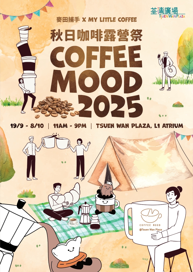 荃灣廣場將於9月19日至10月8日推出年度人氣活動“秋日咖啡露營祭”。 年度咖啡盛事!Coffee Mood 品味咖啡市集 雲集30+本地及國際品牌再掀啡香熱潮 全港年度矚目的咖啡市集“Coffee Mood品味咖啡”今個秋季再度登陸荃灣廣場!由9月19日至10月8日期間雲集逾30間本地及國際的人氣咖啡及美食品牌,包括首次登場的非洲烏干達莊園豆、台灣人氣品牌“Lim-kapi”、“蠻荒咖啡”、“達文西咖啡”、“飛鼠咖啡”等,台灣咖啡團隊更將於9月20及21日來港即席沖製手沖咖啡。本地代表有由DJ阿正創辦、每期都會親自挑選一款咖啡豆的“咖啡呀唔該”、酒店級咖啡特飲的“COFFEE BY THE GRAND”、新鮮Mochi Donut“Donut Demo”等等。另外,更有荃灣廣場星級咖啡美食商戶:人氣精品咖啡店 stain+、木系cafe HOW to live well、美式創意咖啡b.o.t.h. by Texas Burger、創作蛋糕LIFETASTIC等亦為大家帶來市集限定美食,一站式嘆齊美食及咖啡。 免費派咖啡!人氣精品咖啡店stain+全新進駐荃灣廣場 限時打卡送咖啡