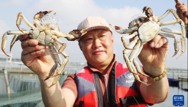 餐廳特設拆蟹服務。(香港中通社記者 黃璇攝) “私宴海派燻魚配芋餅”與“揚州蘿蔔扣花膠”則分別展現了滬與淮揚菜的傳統功夫。燻魚外酥內嫩,芋餅香氣細膩,兩者搭配恰到好處。蘿蔔扣花膠則以揚州蘿蔔心燜入味,配上軟糯花膠,口感溫潤細膩。