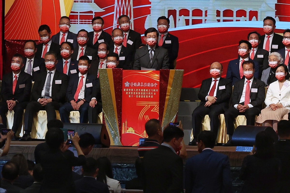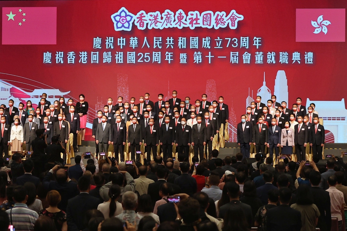 香港廣東社團總會第十一屆會董就職典禮 除李家超到場祝賀外,同場參加者包括中央政府駐港聯絡辦副主任何靖、政務司司長陳國基、財政司司長陳茂波、全國人大常委譚耀宗等,廣東省常委、統戰部部長王瑞軍則以影片形式致辭。