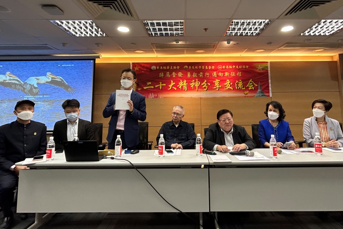 11月1日,香港緬華互助會、香港緬中友好協會、季羨林學習基金會在聯合出版大廈16 樓會議廳舉行“二十大精神分享交流會”。大會主席王錦彪先生致歡迎詞,港區全國人大代表,太平紳士顔寶玲女士、香港緬中友好協會會長、鏡報社長徐新英女士、香港緬中友好協會主席、中國僑聯常委王錦彪先生、新民黨副主席,立法會議員容海恩女士、華僑華人研究中心主任許丕新先生、中國僑聯青委,緬中友好協會青年部主任王德聖先生、香港緬中友好協會會長韓慶蓉女士、民建聯培訓委員會主席,城市智庫招聚人洪錦鉉先生、季羨林學習基金會會長、香港緬中友好協會常務副會長高景波先生及與會的120多位嘉賓們共同分享學習。