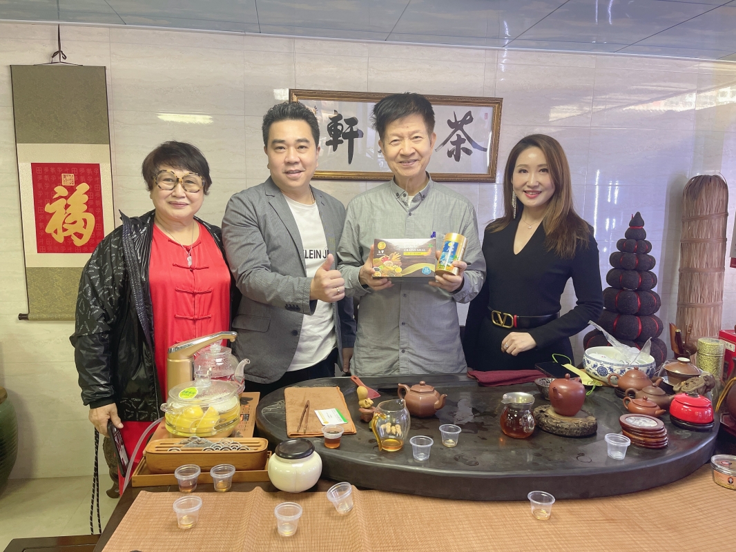 從事營養健康保健的生寶人參蔡總(左二)向王子天先生(右二)贈送人參粉和人參健康早餐。 【編輯:洪少葵】