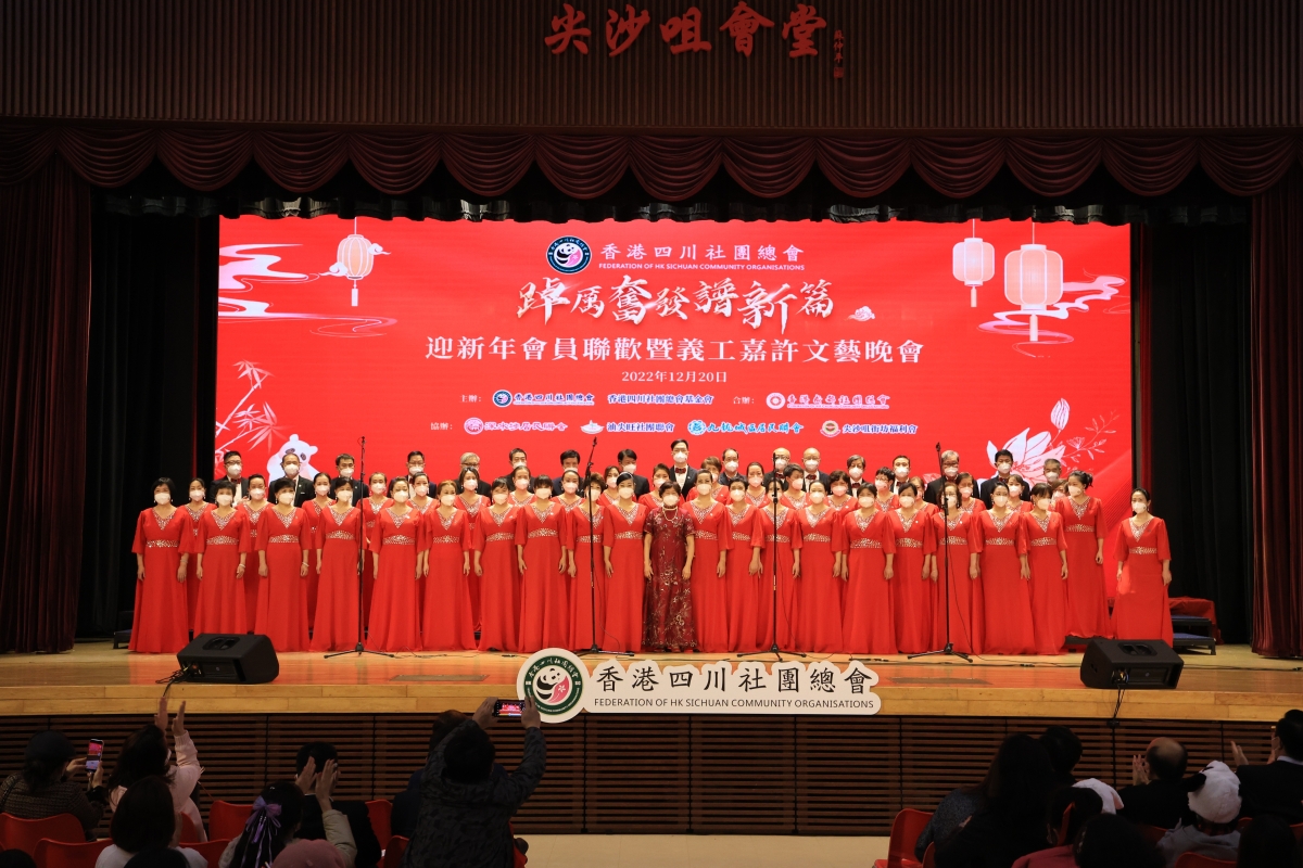 香港新聞網12月22日電 四川社團總會20日在尖沙咀街坊福利會會堂舉行“踔厲奮發譜新篇2022迎新年會員聯歡暨義工嘉許文藝晚會”,大會嘉許了9個義工集體和164名優秀義工,為深水埗居民聯會、油尖旺社團聯會、九龍城區居民聯會三個共建社區頒發感謝狀,總會新成立的60人合唱團及各團隊、屬會各表演了大合唱、舞蹈、川劇《變臉》等12個文藝節目,700多會員代表出席。