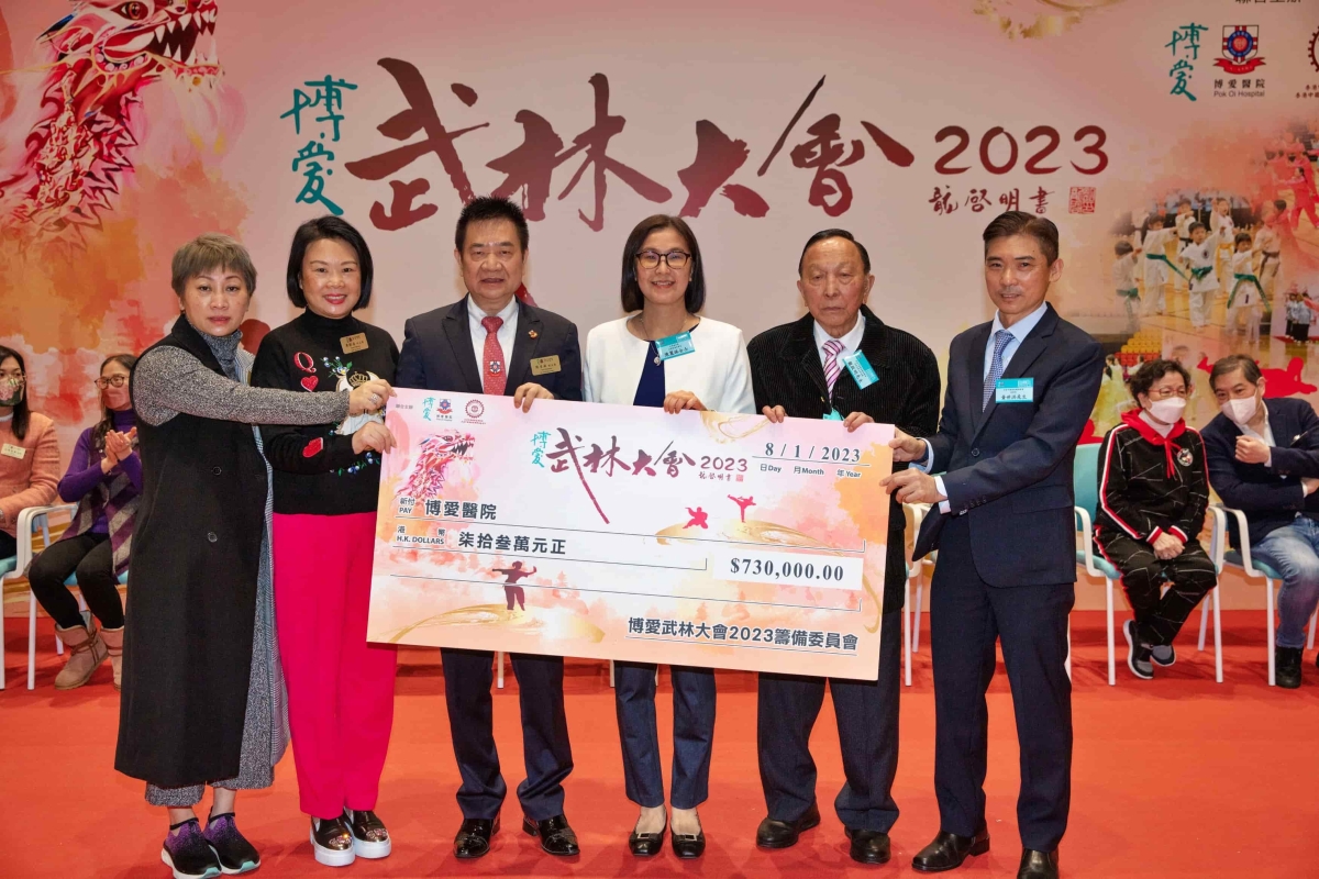 “博愛武林大會2023”為博愛醫院籌得超過港幣73萬元。圖源:香港商報 今年“博愛武林大會2023”共吸引43隊武術團隊、超過1000位武林好手互相交流切磋,並為博愛醫院籌得善款超過73萬港元,成績美滿。是次活動籌得的善款,將用作支持該院發展社會服務,為社會上有需要的長者、家庭、兒童及青少年提供適切援助。 博愛醫院壬寅年董事局候任主席陳首銘致辭時感謝香港中國國術龍獅總會及各武術界人士多年來的支持,亦感謝各武術團體於疫情困境下仍出心出力,熱心捐助,為博愛醫院籌得可觀善款,繼續發展社會服務,為弱勢社群送上希望。“博愛武林大會”於本年踏入第13屆,院方期盼藉此活動,凝聚不同武術派系和年齡層的參加者,將武術推廣至不同界別人士,一同修武弘善,彰顯行善最樂的高尚情操。