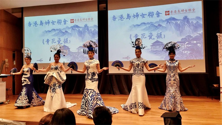 香港島婦女聯會的《青花瓷韻》節目表演。圖源:香港商報 倡議慶典除卻典禮之外,還有豐富多彩的表演,包括中國風的歌舞、國樂表演、炫彩奪目的服裝走秀。香港島婦女聯會的《青花瓷韻》節目贏得大家熱烈掌聲!除此之外,還有華服試穿環節,深受觀眾們喜愛,會場氣氛愉快,在歡聲笑語中活動圓滿成功。
