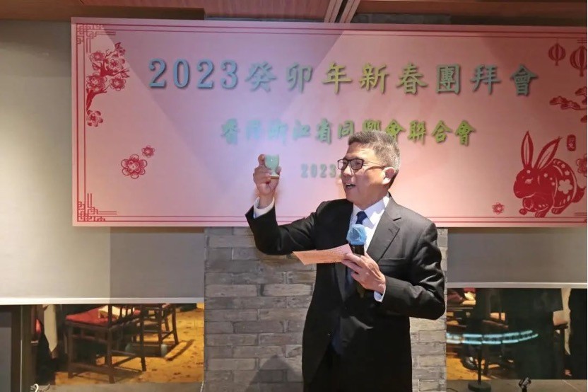 香港浙江省同鄉會聯合會會長陳仲尼致辭。圖源:香港商報 陳仲尼致辭時表示,自己任內四年,是浙聯會創會以來最艱難最嚴峻的四年。2019年的暴動,2020至2022年三年疫情,大家的生活與工作都受到了很大的影響。但雖然未能正常相聚,省委統戰部和中聯辦一直與我們保持聯絡,時時關心和問候,在疫情最困難的時刻,及時贈送抗疫物資,始終是浙聯會最堅強的後盾。未來,他期望大家團結一致,努力把浙聯會的會務工作做得更好。祝願大家事業興旺,身體健康,如意吉祥!